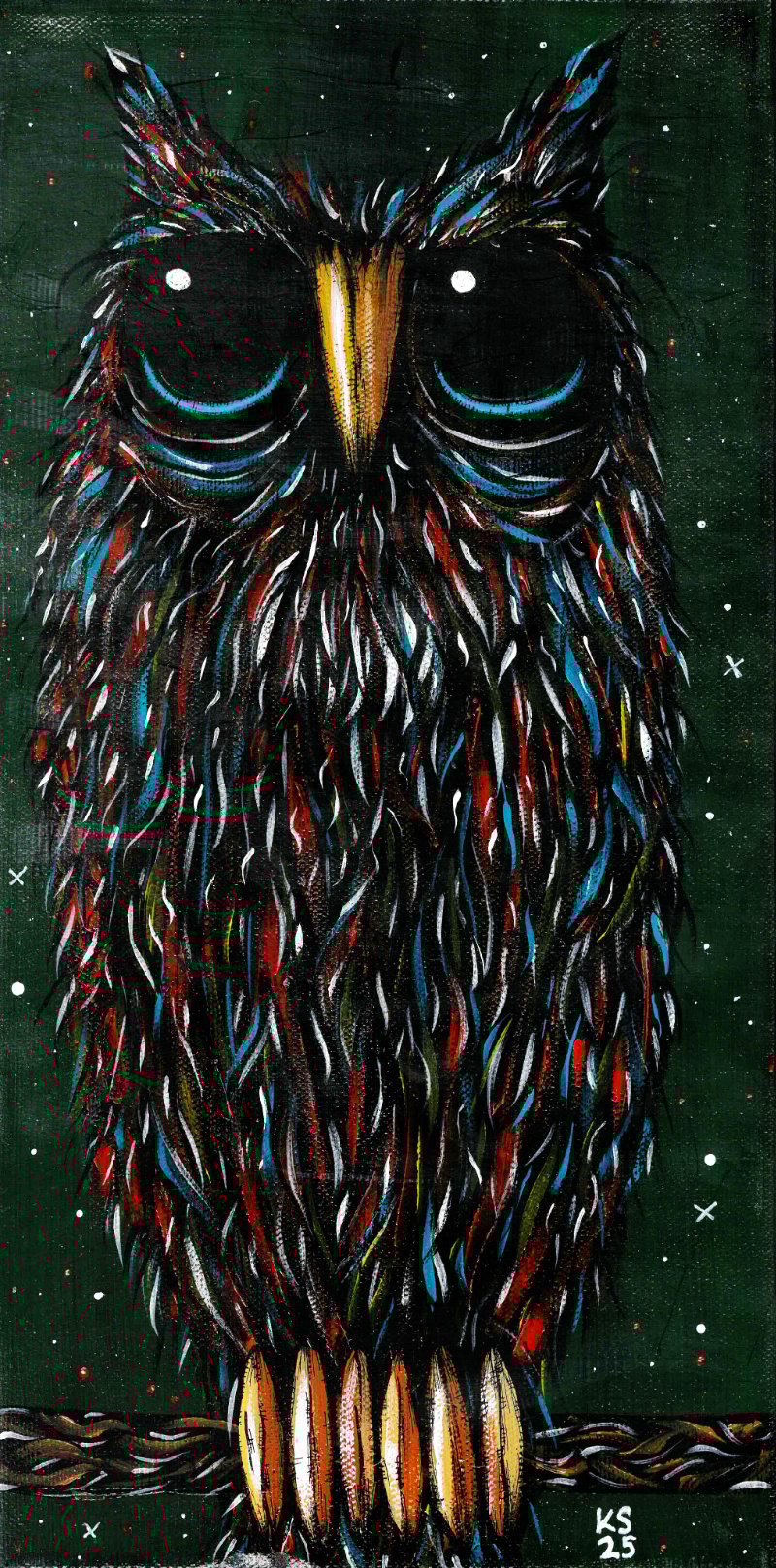 KS Original 7x14 acrylic on stretch canvas, 'Theo Muskell Turns Over A New Leaf’