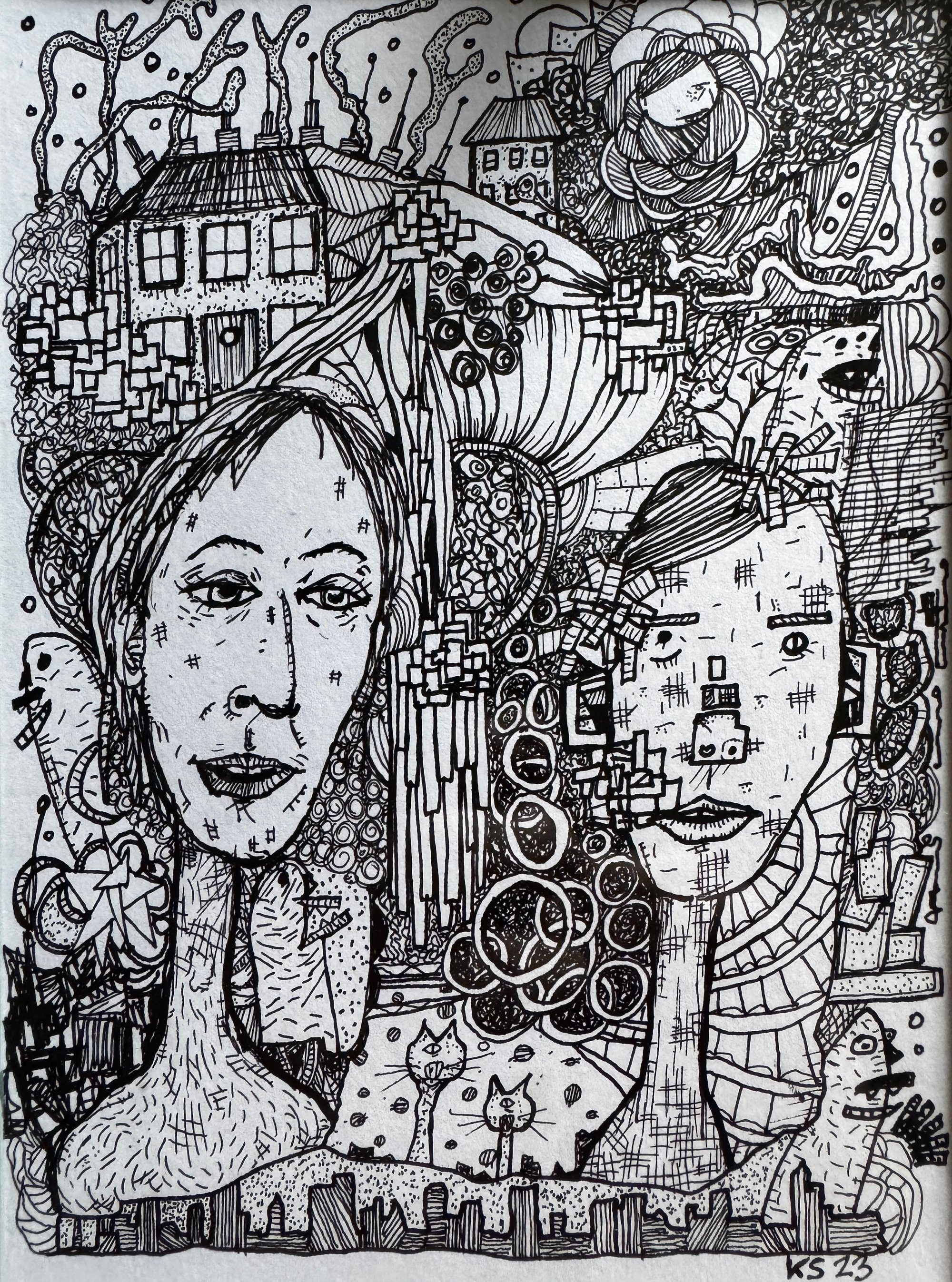 This is original artwork by Kevin Seconds from 2023. Ink on multi-media paper.