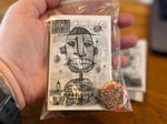 3 2"x4" acrylic on canvas panel owl paintings, along with a copy of the debut issue of Hole Sailor, my free verse poetry mini-zine and a handmade button.